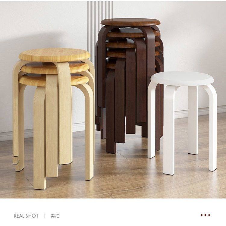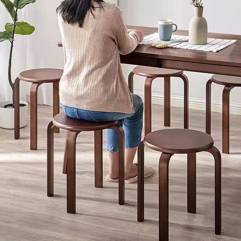 2025新新款实木凳子商用餐饮店简约家用客厅出租屋圆木餐凳成人叠