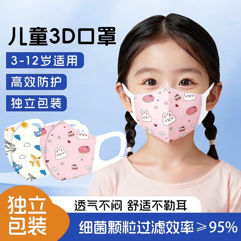儿童KN95口罩4D立体学生卡通可爱小学生3到12岁四层防护独立包装