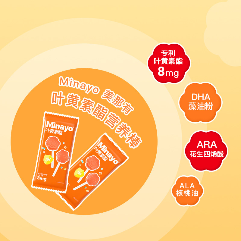 Minayo美那有叶黄素酯营养棒DHA藻油软糖儿童青少年成人白桃味