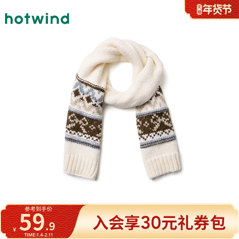 热风2025年冬季新款女士费尔岛提花针织围巾