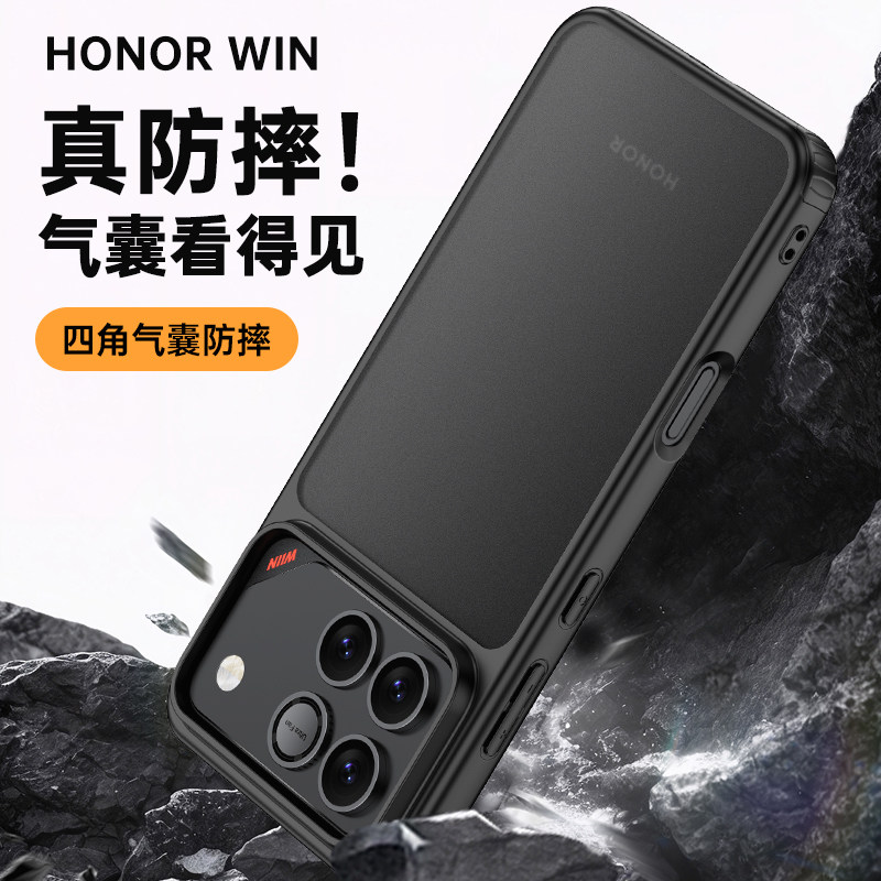 AOAP 适用荣耀WIN手机壳新款WINRT散热出风口开孔设计护甲气囊防摔壳win肤感磨砂软边大孔旋转支架磁吸保护壳
