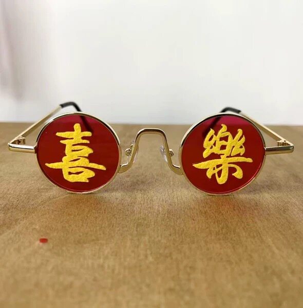 影楼新年主题儿童摄影拍照道具喜乐眼镜新年快乐春节过年装饰道具