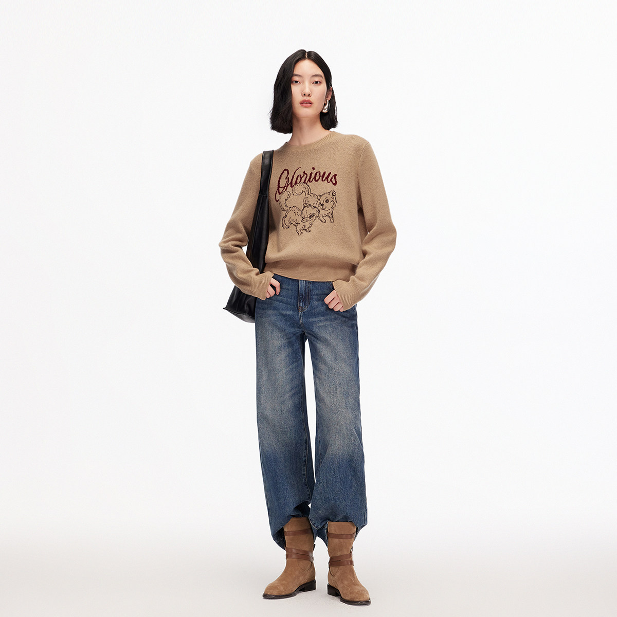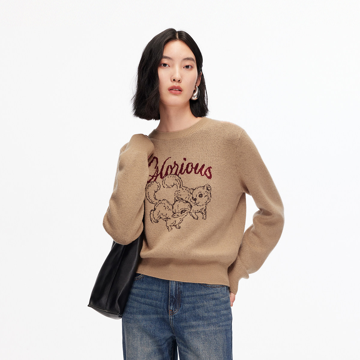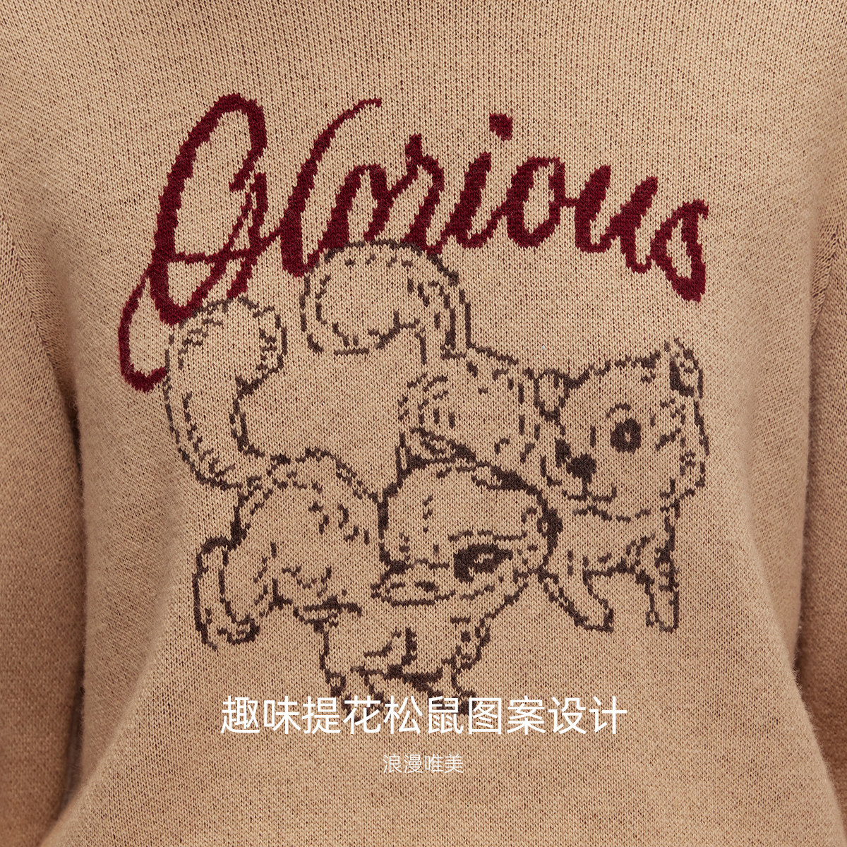 圆领套头毛衣,提花松鼠图案设计;柔软细腻