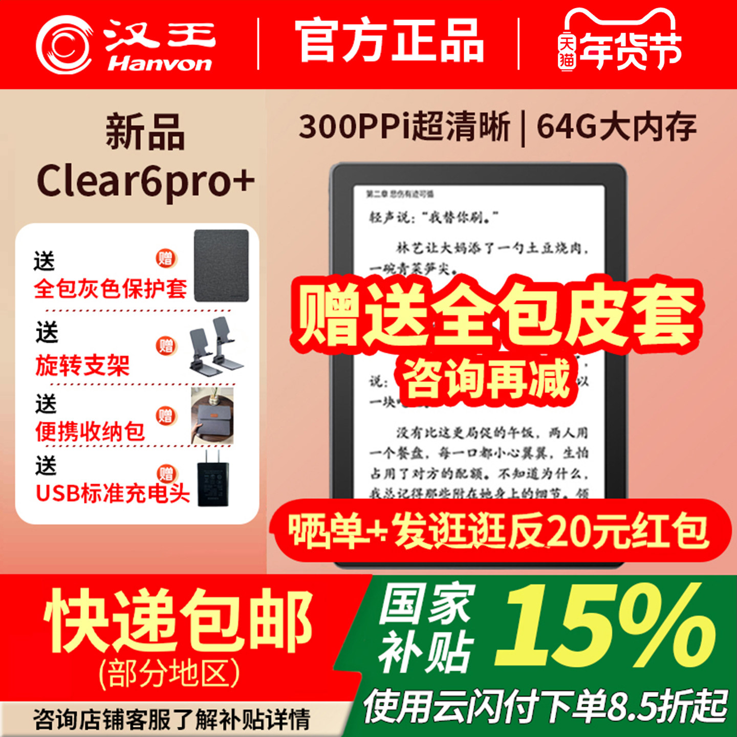 【入会立减】汉王clear6plus6英寸2025新款碧水青色电子墨水屏阅读器电子纸护眼读书阅览器电纸书电子书看书