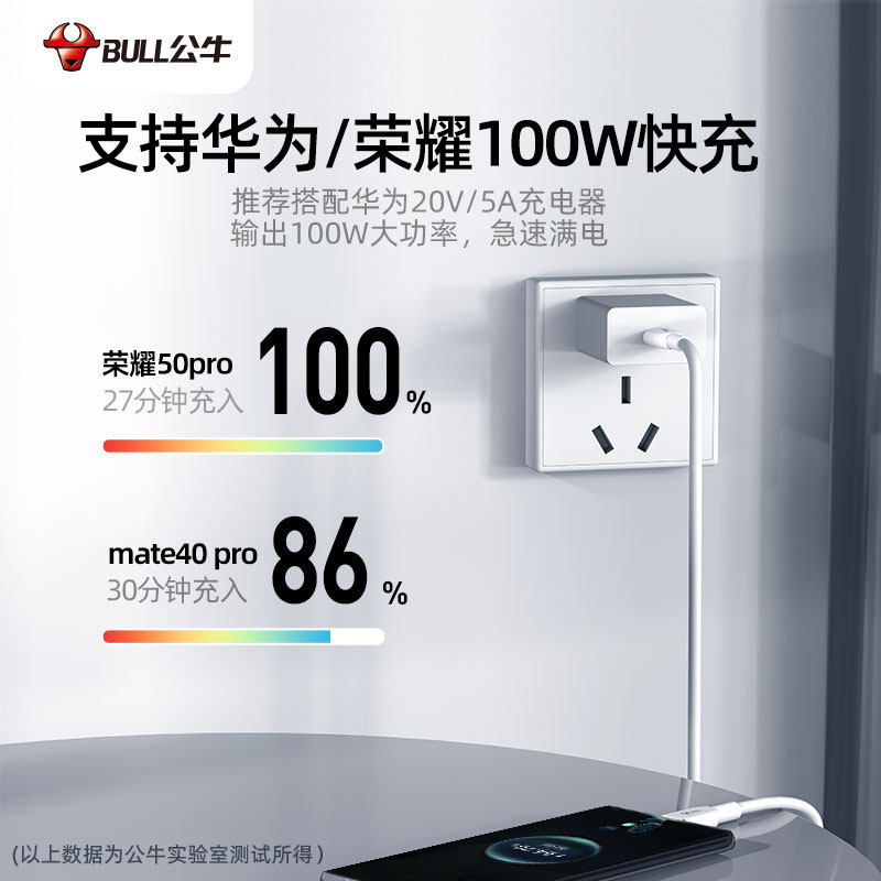 公牛typec数据线6a超级快充适用华为66W40Wmate60p50nova荣耀小米安卓手机5a耐用usb转typec防折断车载充电线