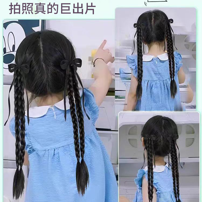2-6岁儿童蝴蝶结丝带编发马尾麻花辫表演头饰假发长发辫子拍照