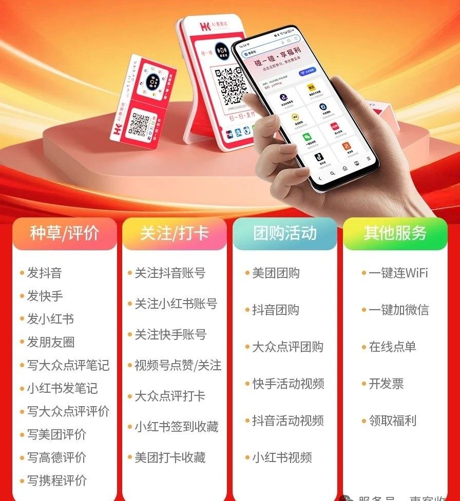 商家智能营销神器NFC碰碰贴拓客推广获客收款音箱0费率AI领券互动