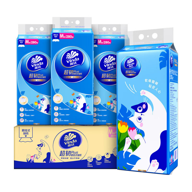 维达超韧悬挂式抽纸280抽4提整箱家用餐巾纸大包手纸厕纸卫生纸巾