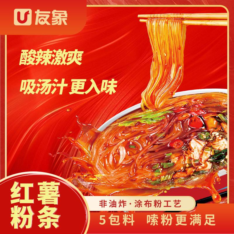 李子柒薯你弹酸辣粉5袋装红薯粉四川粉丝米线方便速食272g*5袋