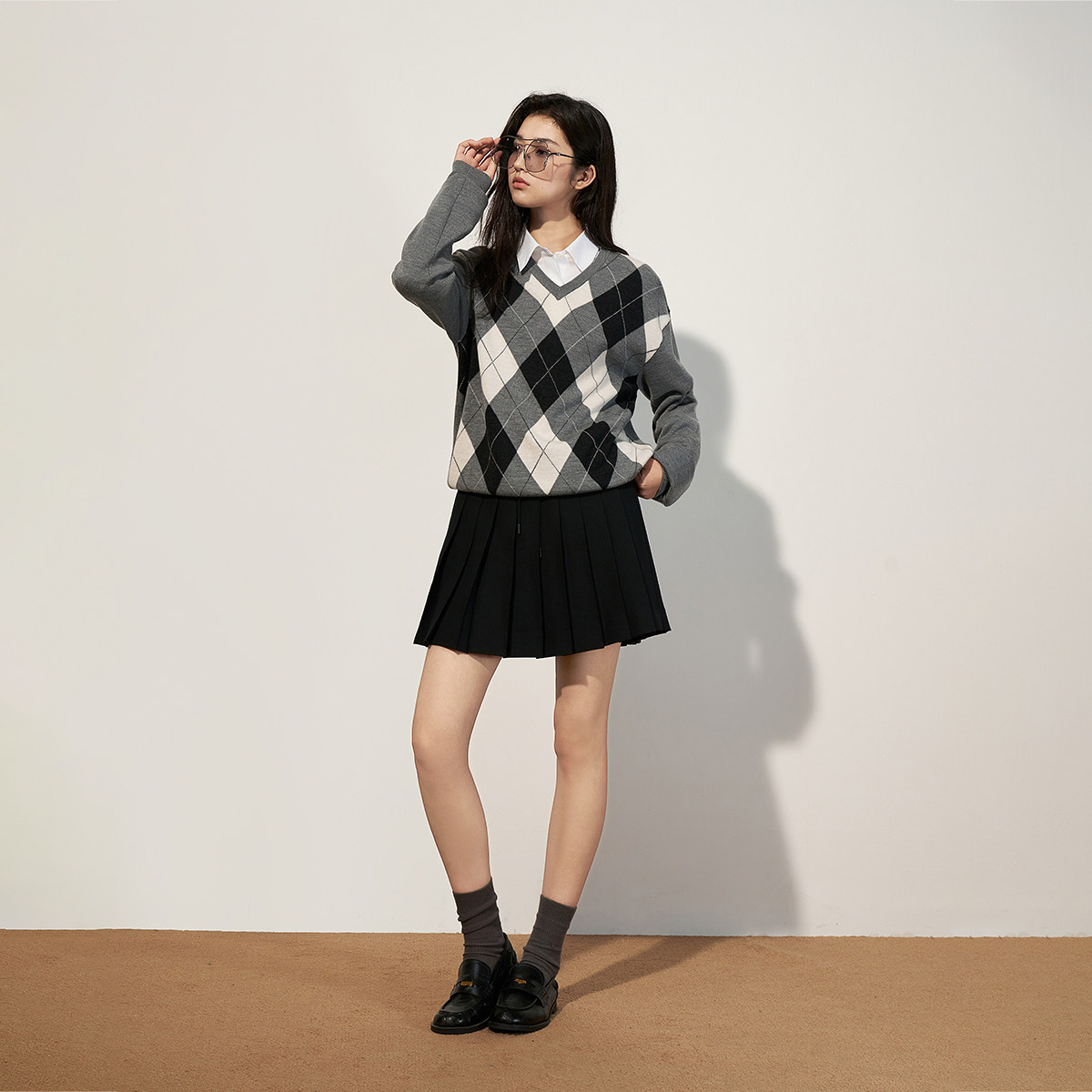 【特享折扣】欧时力 弹力花呢松紧腰头百褶半身裙a字短裙2025秋冬