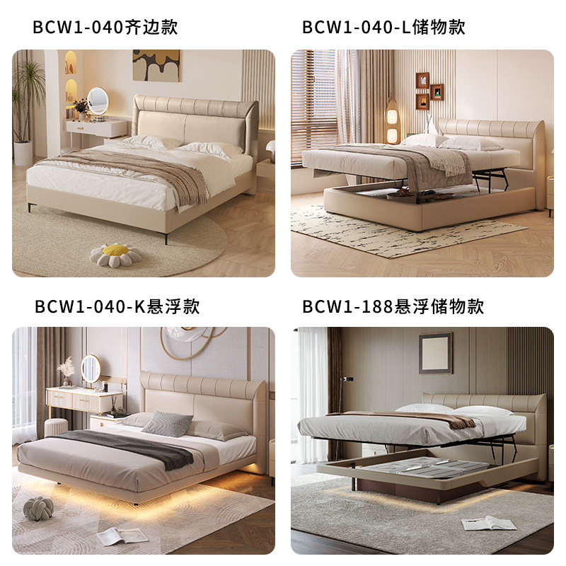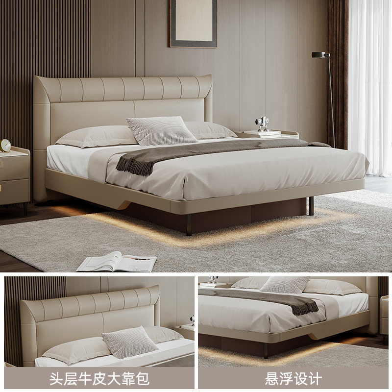 意式真皮床主卧2米x2米2大床现代简约1.8米软包皮艺实木储物婚床
