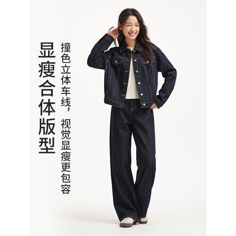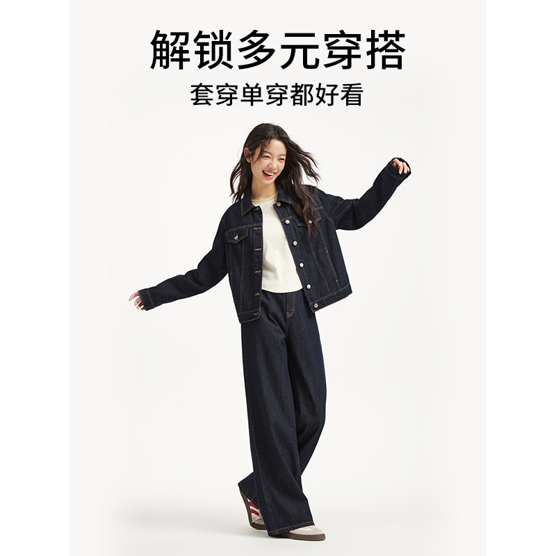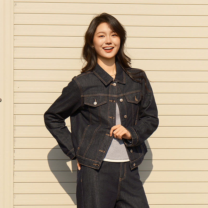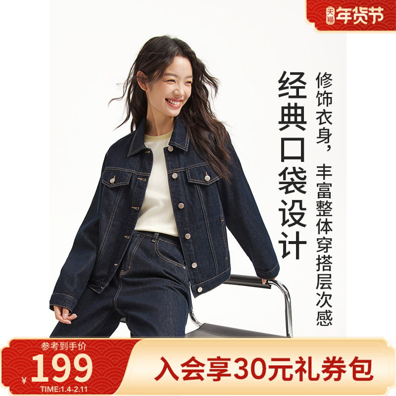 热风2026年春季新款女士基础休闲牛仔外套松弛丹宁挺括廓形