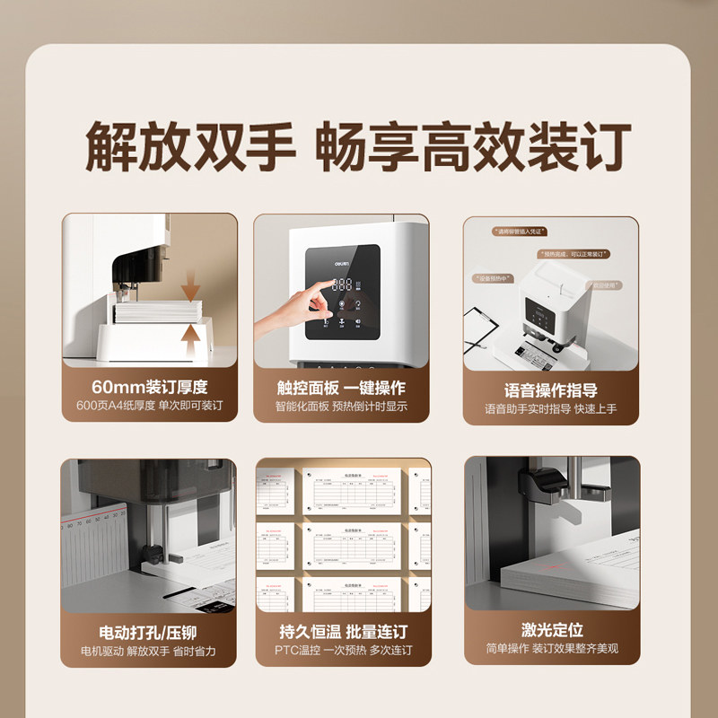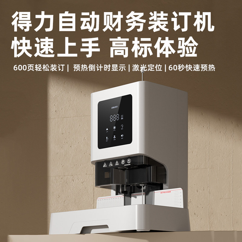 顺丰发货 得力自动财务装订机GB710 预热时间倒计时显示 厚度60mm 凭证打孔机铆管装订机 钻刀14740 赠送钳子