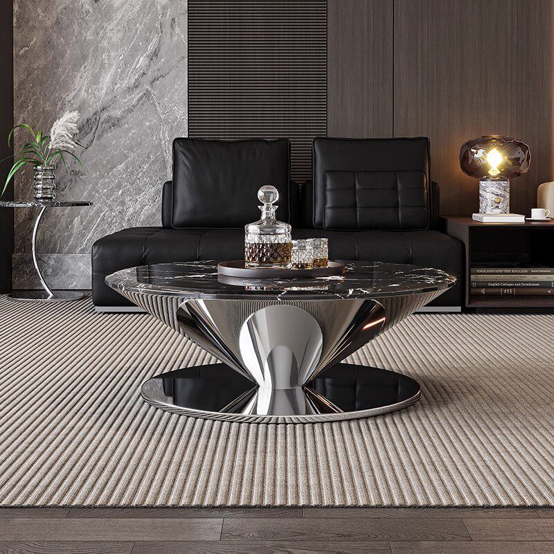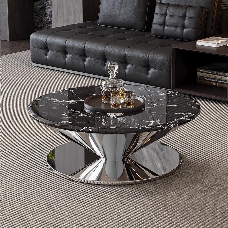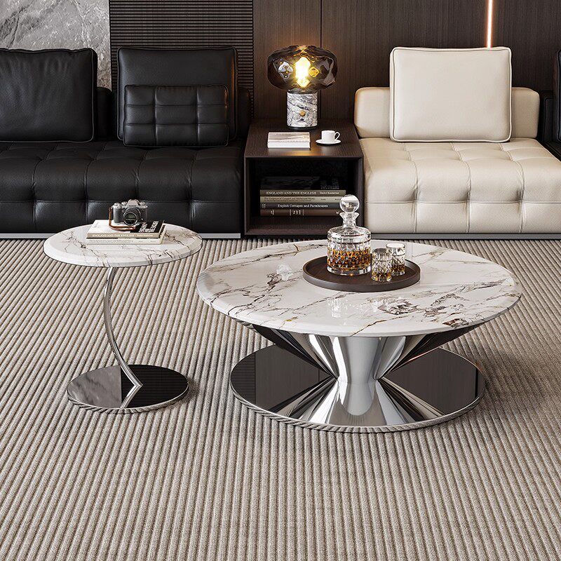 意式极简飞碟悬浮茶几客厅微晶石大理石圆形边几组合设计师玻璃