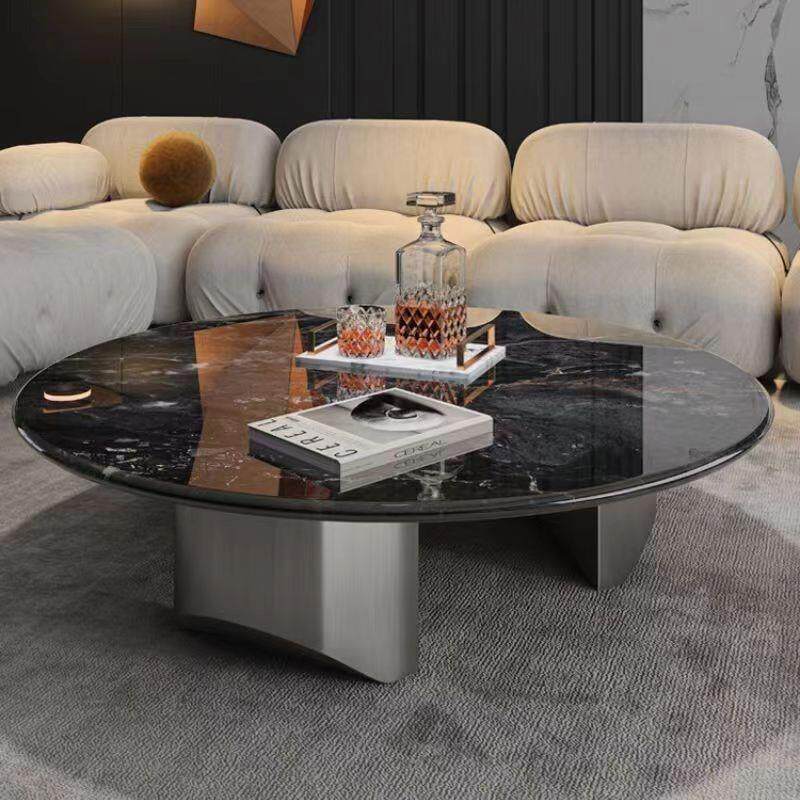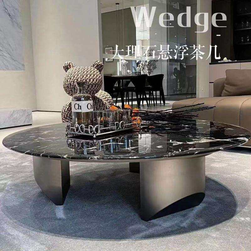 意式微晶石石茶几茶台极简客厅家用大理石台面大小圆形茶几组合