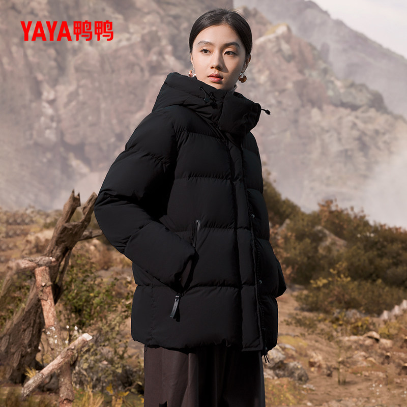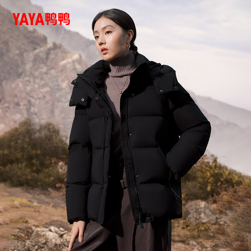鸭鸭90鹅绒加厚羽绒服女款2025秋冬新品连帽立领加厚保暖短外套A