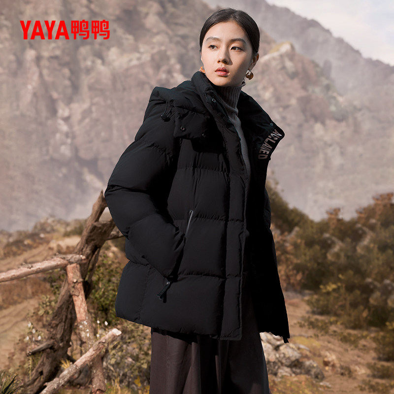 【鞠婧祎同款】鸭鸭2025年冬新款百搭短款女士纯色立领羽绒服外套