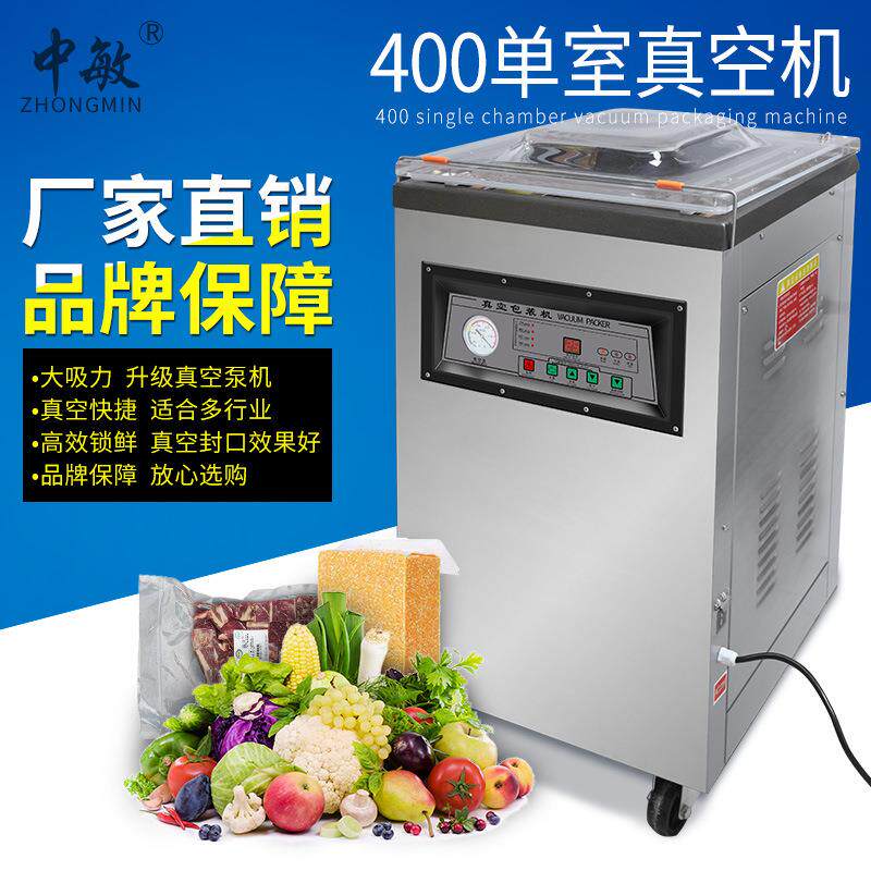 中敏400食品包装机全自动干湿两用抽茶叶大米卤货封口打包真空机