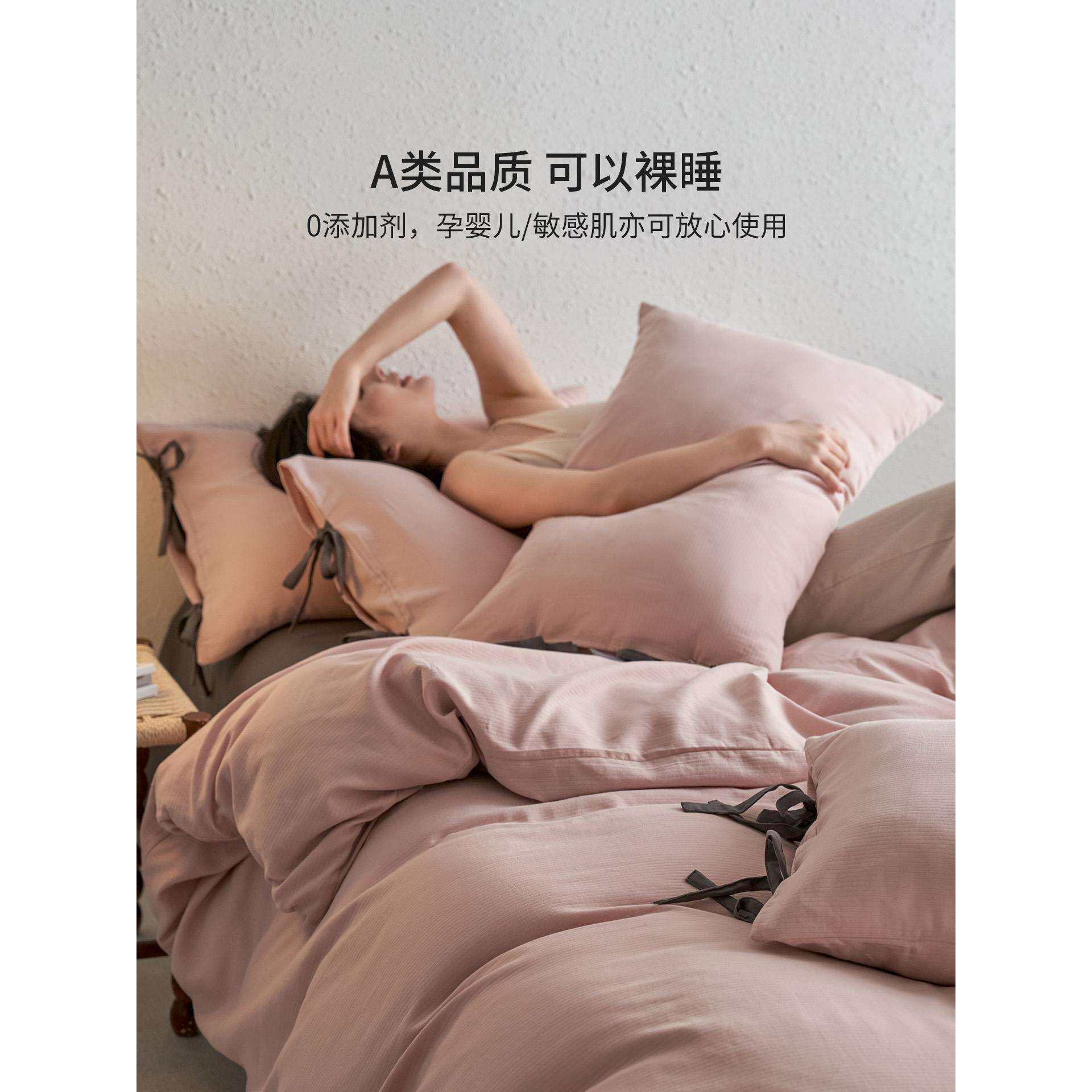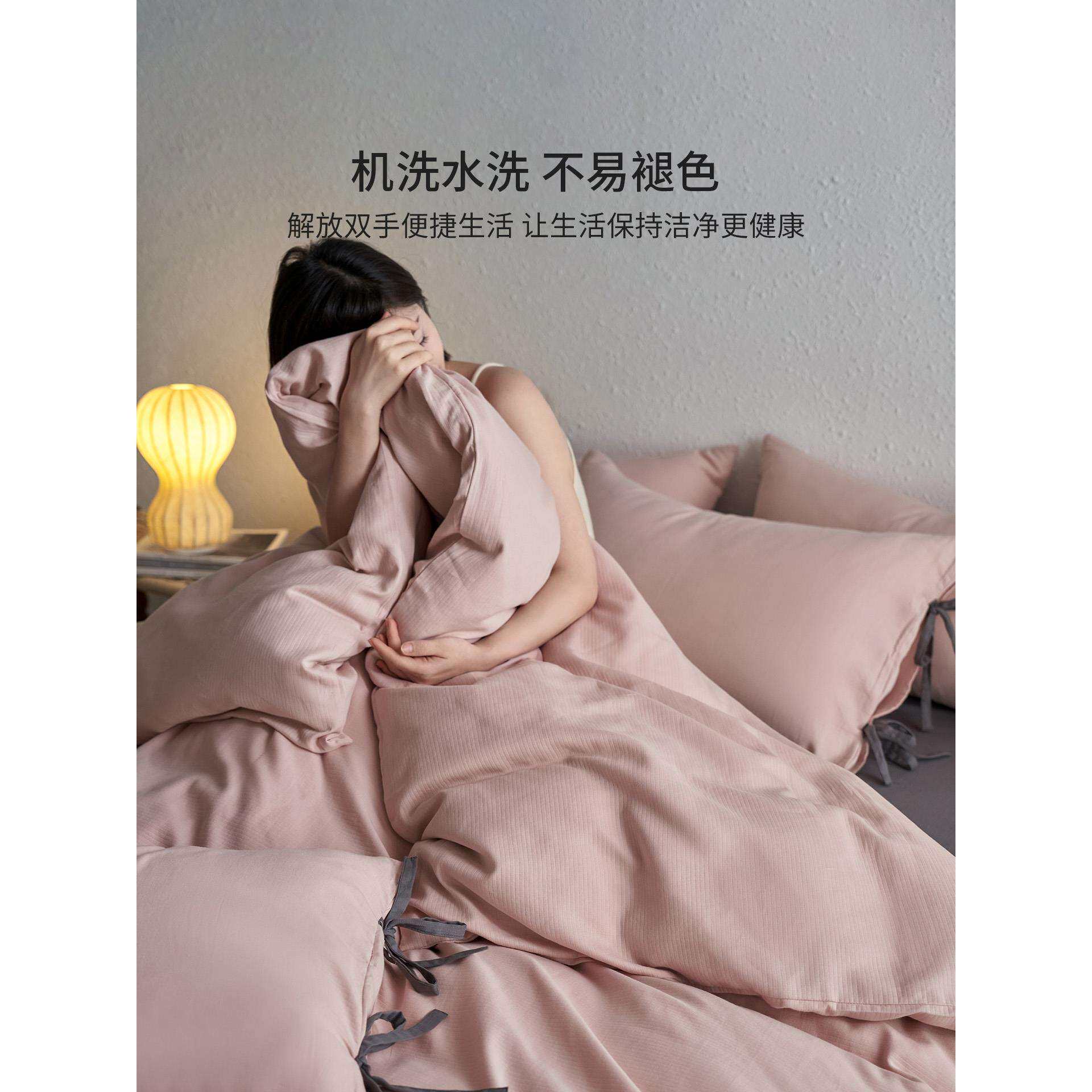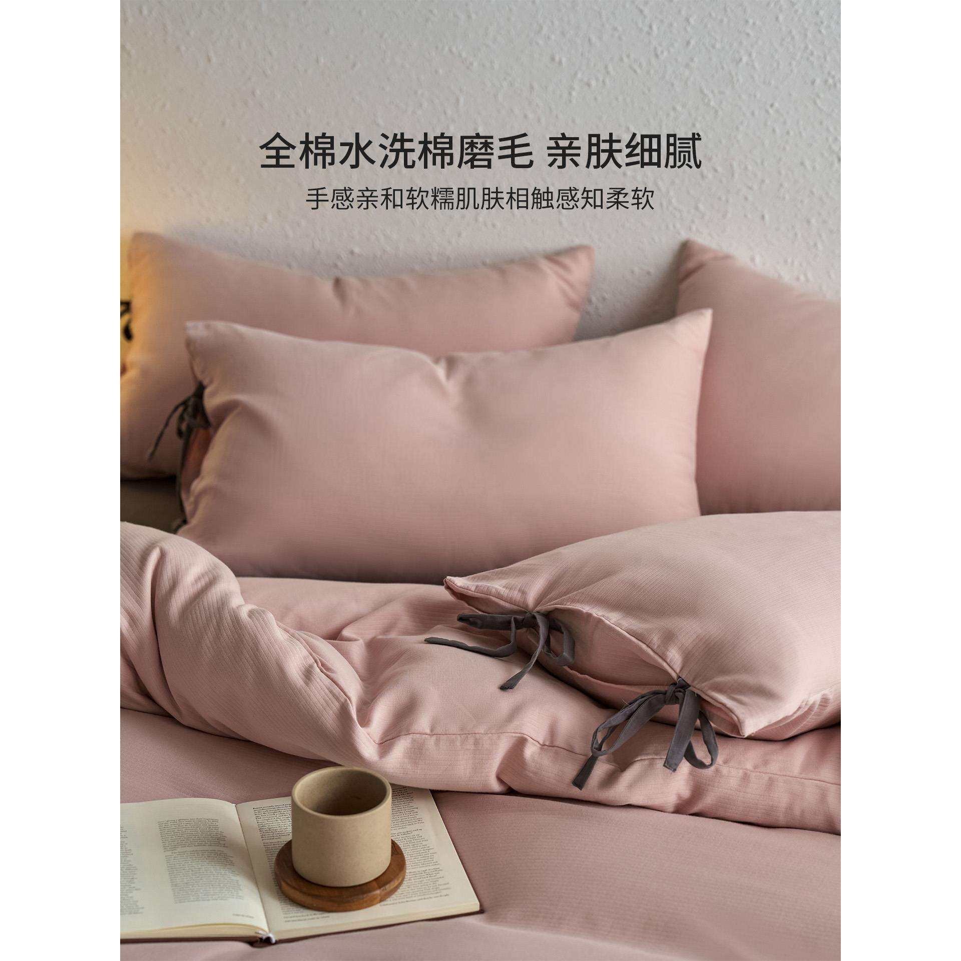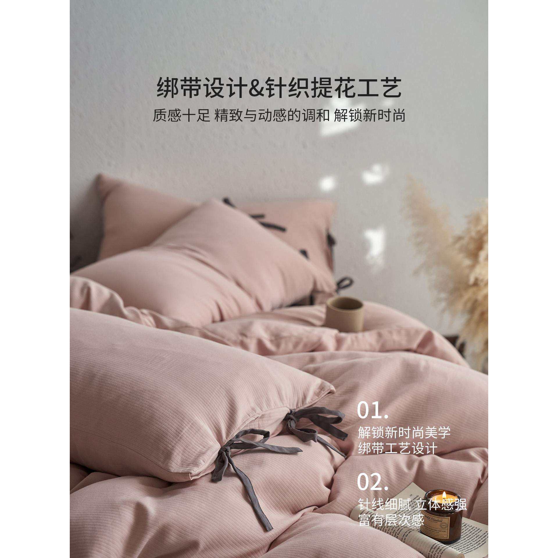 简约A类全棉水洗磨毛床上四件套纯棉针织提花被罩床单绑带款床品3
