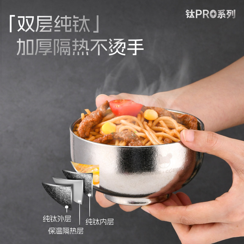 希乐纯钛碗餐具抑菌防霉2025新款高档家用户外露营双层隔热防烫碗