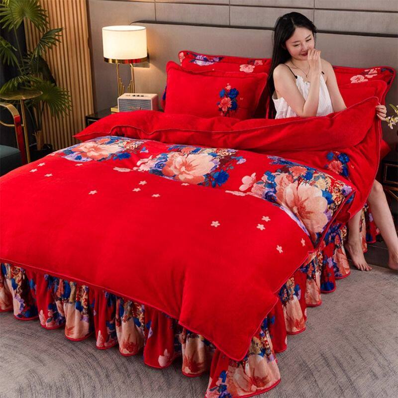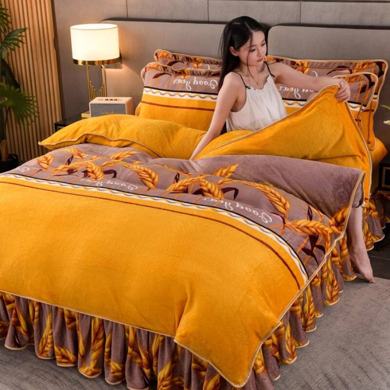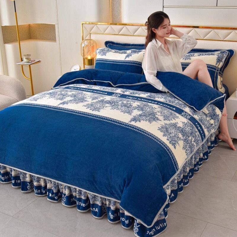 双面绒牛奶绒床裙款四件套冬季加厚保暖法兰绒金貂绒家用被套