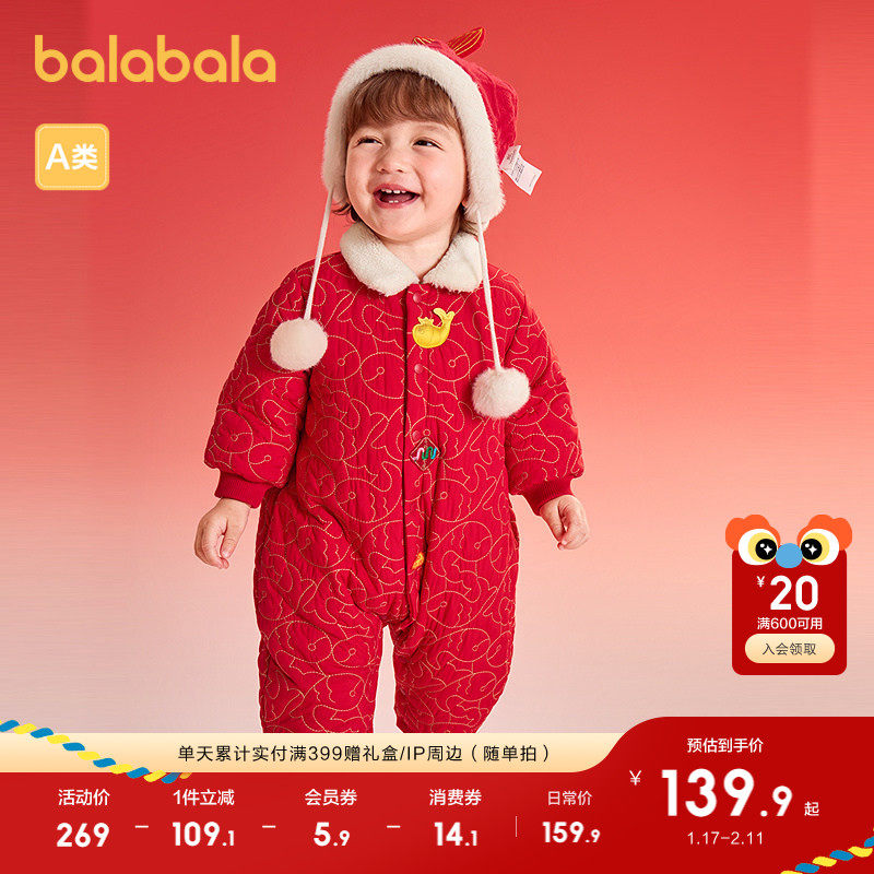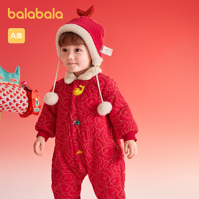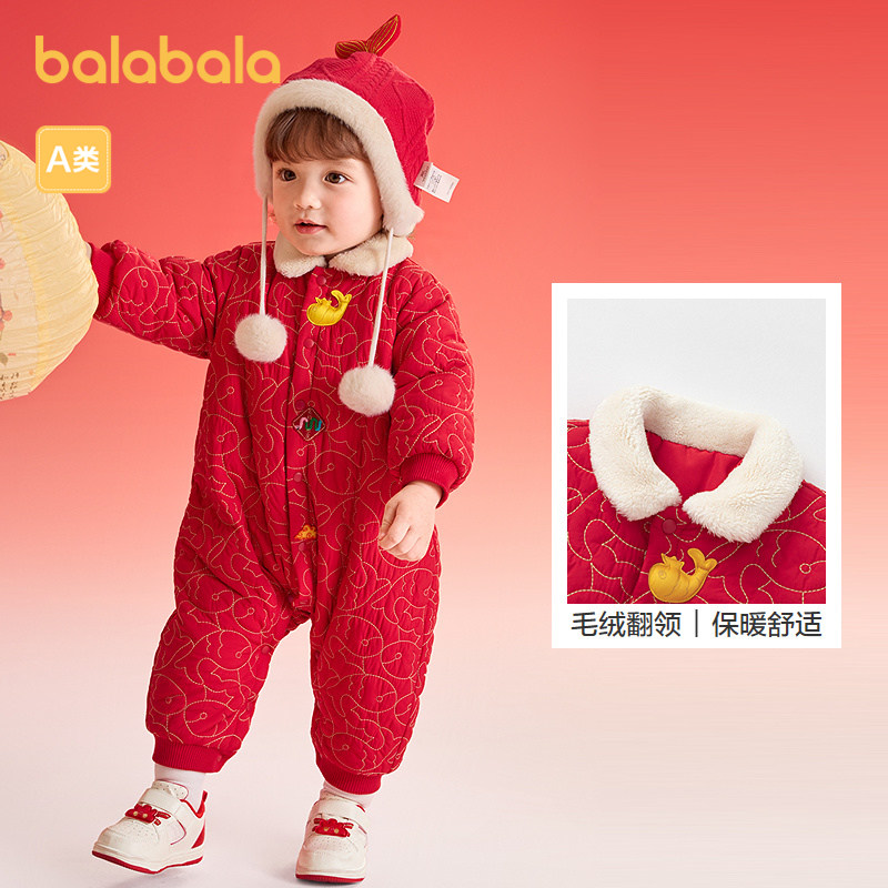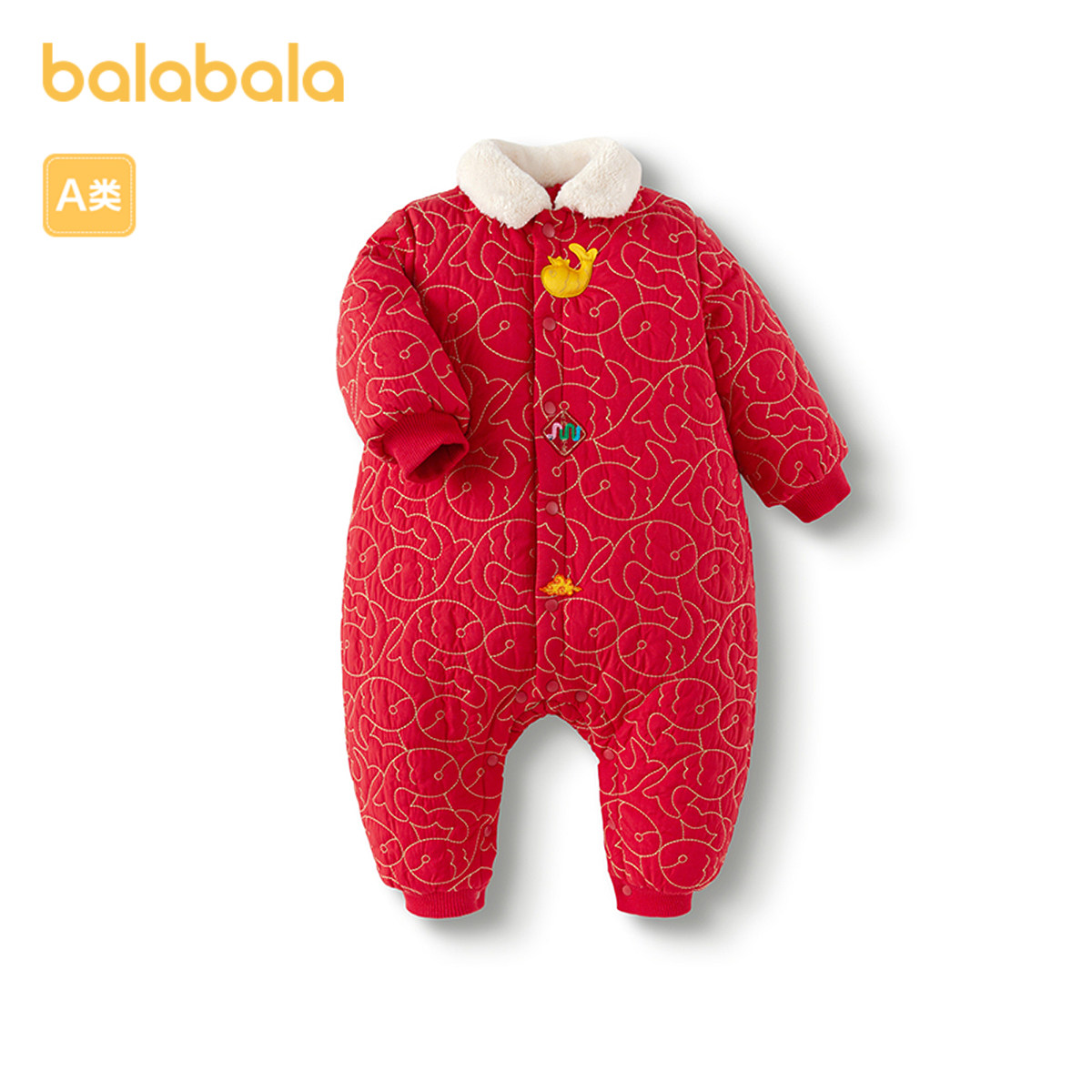 巴拉巴拉童装婴儿连体衣新生儿哈衣爬服宝宝衣服2025拜年服红色萌