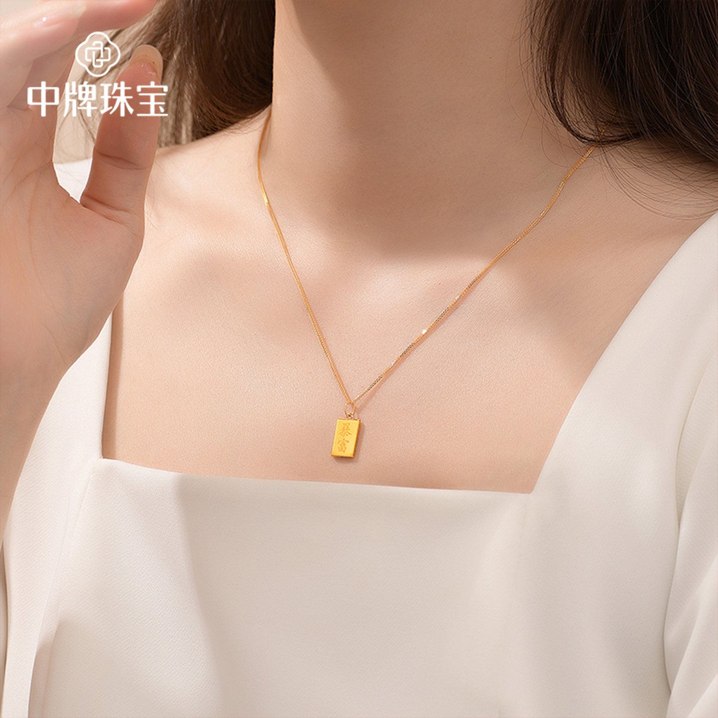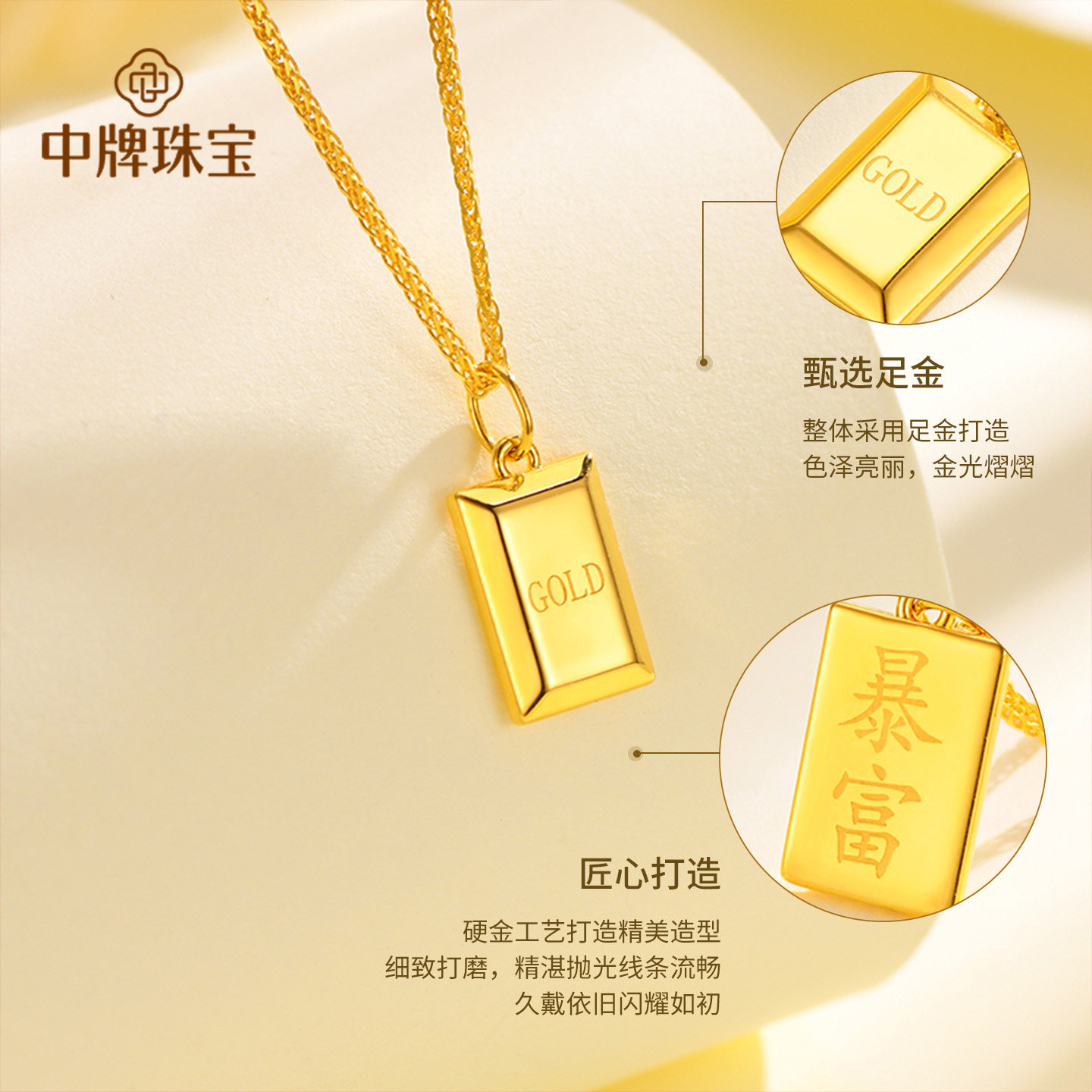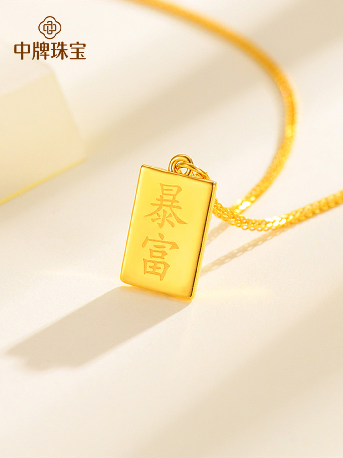 足金暴富小金砖黄金吊坠金条项链纯金挂坠纳福小金条情人节礼物女