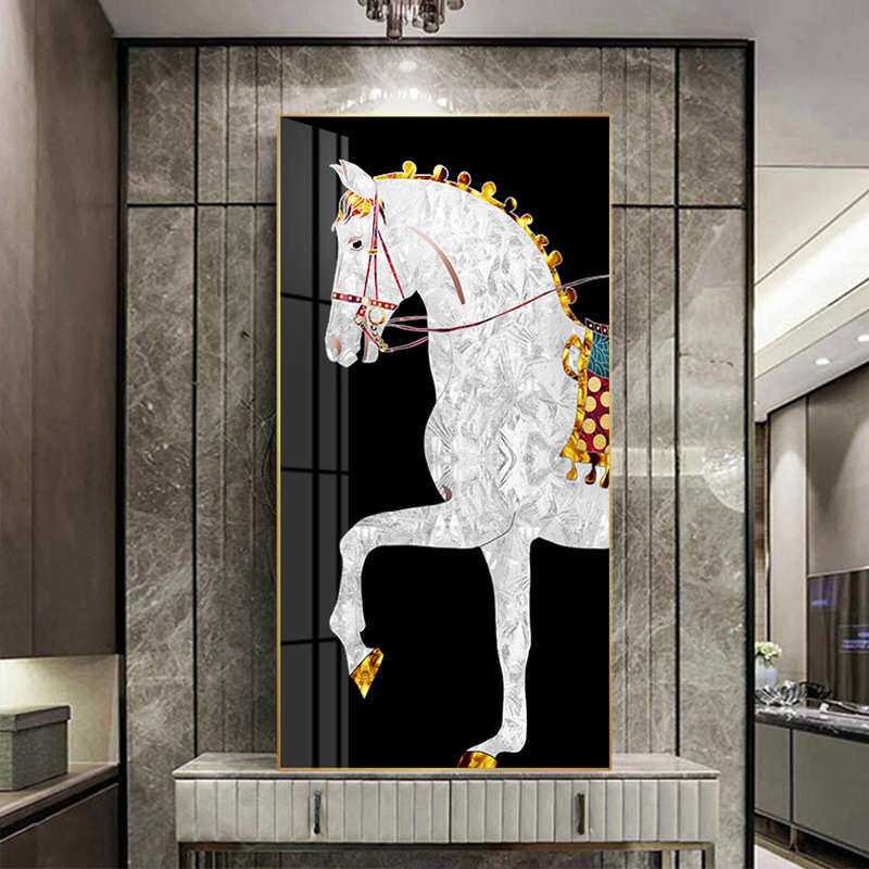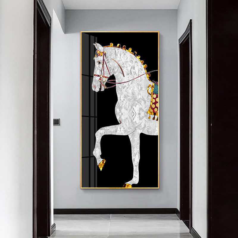轻奢后现代简约电视柜玄关走廊过道竖版挂画高档别墅马轻奢装饰画