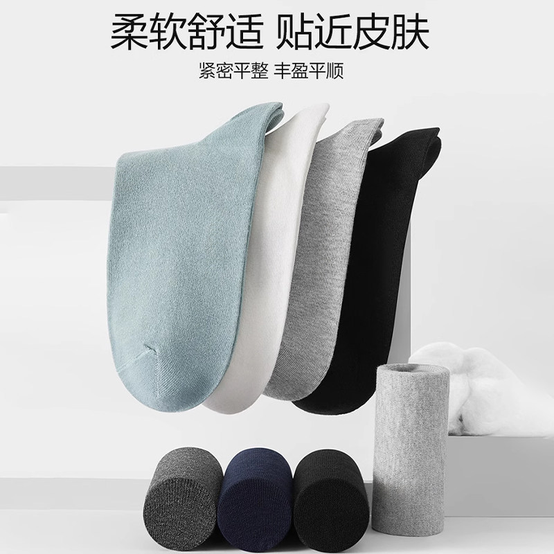 新款日本MUl纯棉袜子男士短筒袜秋冬季防臭中筒袜吸汗透气运动袜