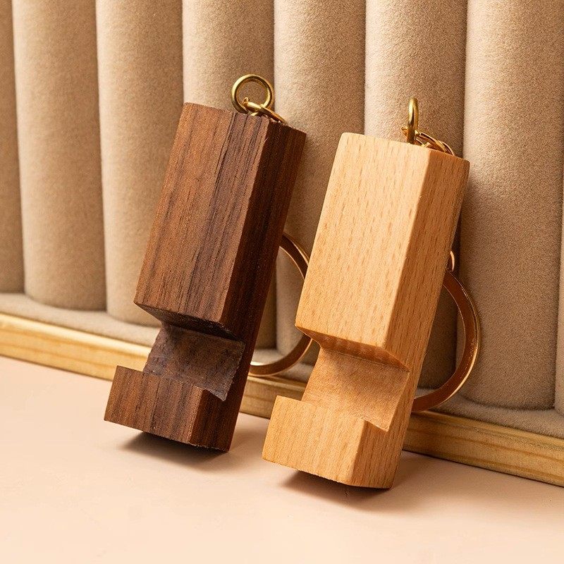 创意定制小巧可爱随身携带木质手机支架 钥匙扣实木手机座刻logo