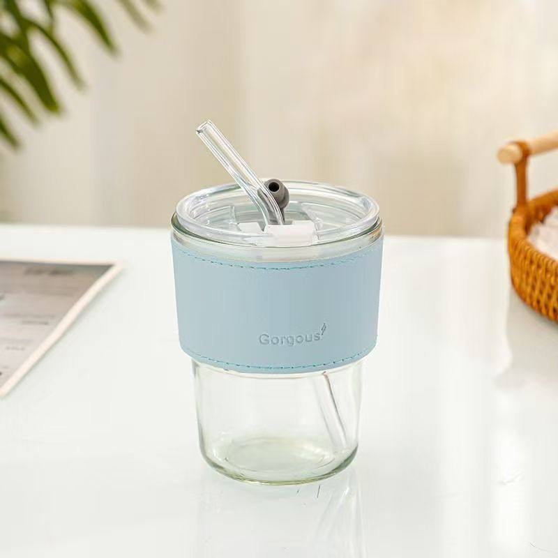 玻璃杯大容量1000ml高硼硅泡茶杯女办公室家用喝水杯子吸管杯新款