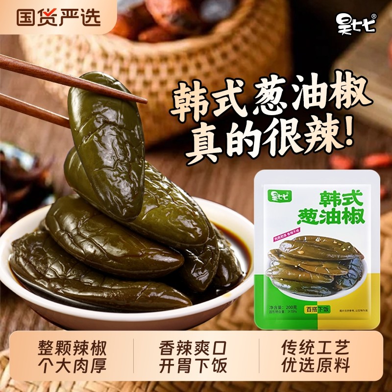 昊七七韩式葱油椒延边朝鲜泡椒泡菜整颗腌制香辣油焖港椒下饭开胃