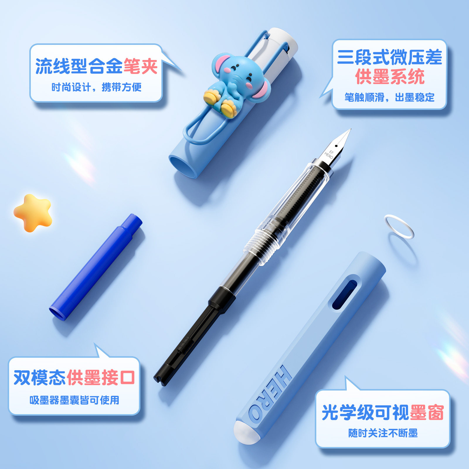 英雄牌热敏可擦钢笔三年级小学生专用正姿练字可替换墨囊精致高颜值初学者四五年级儿童刻字十大品牌官方正品