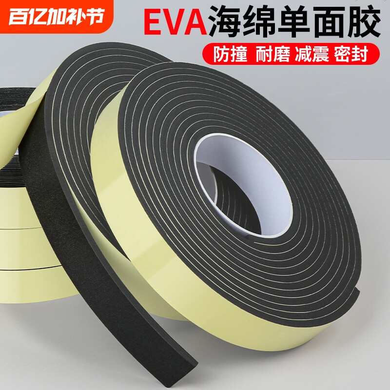 黑色单面海绵EVA胶带防撞密封条隔音减震缓冲挡水止浆填缝泡沫橡胶泡棉胶条加厚防水自粘型缝隙填补隔音贴