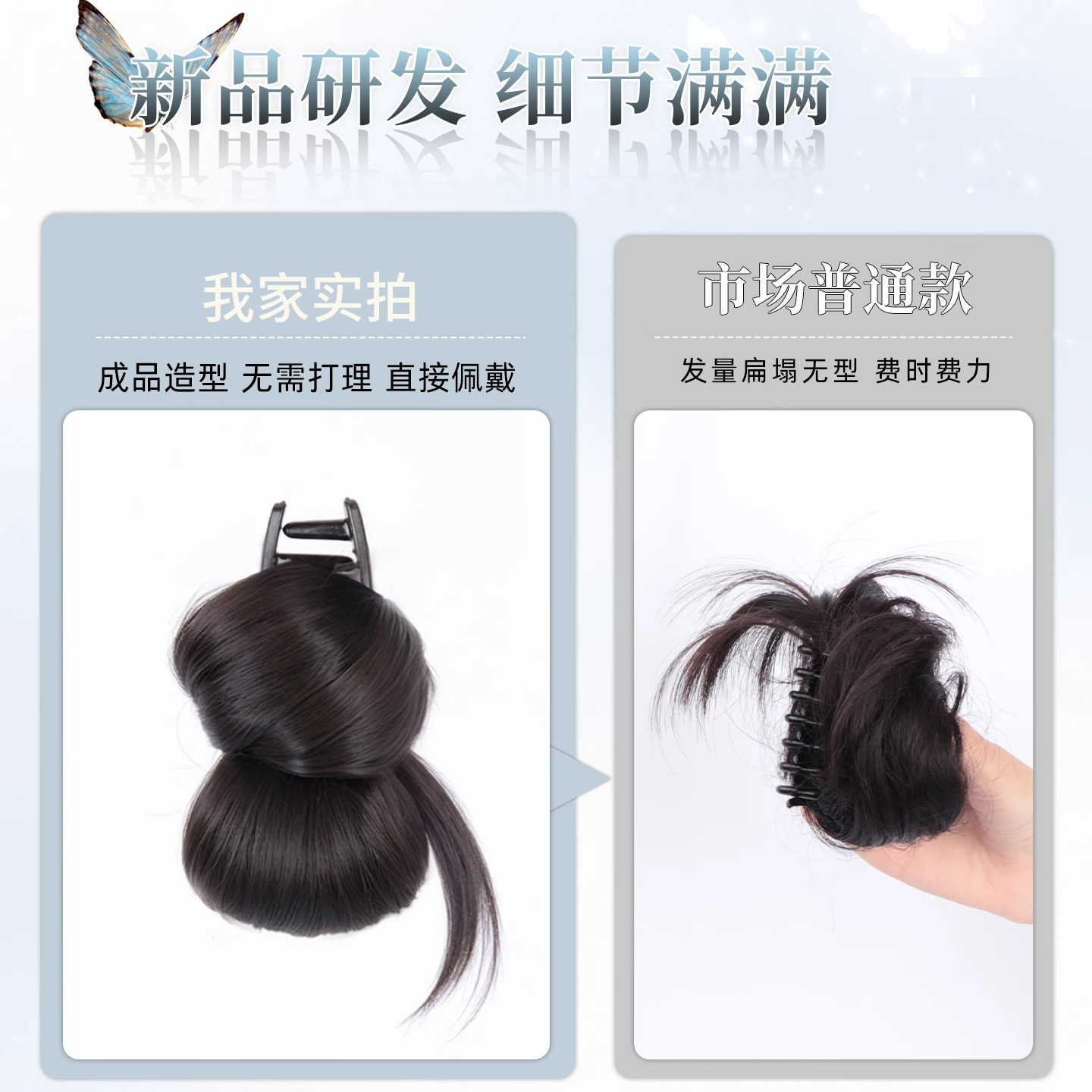 假发低丸子头抓夹感花苞头盘发神器后脑勺扁头发饰假发包真发千金