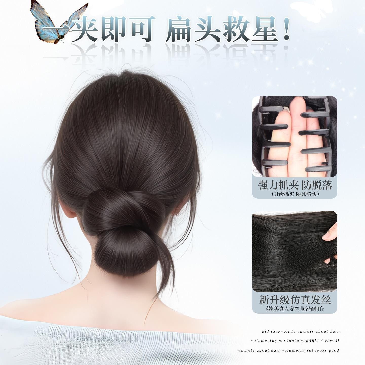低丸子头假发抓夹感花苞头盘发神器后脑勺发饰假发包真发造型千金