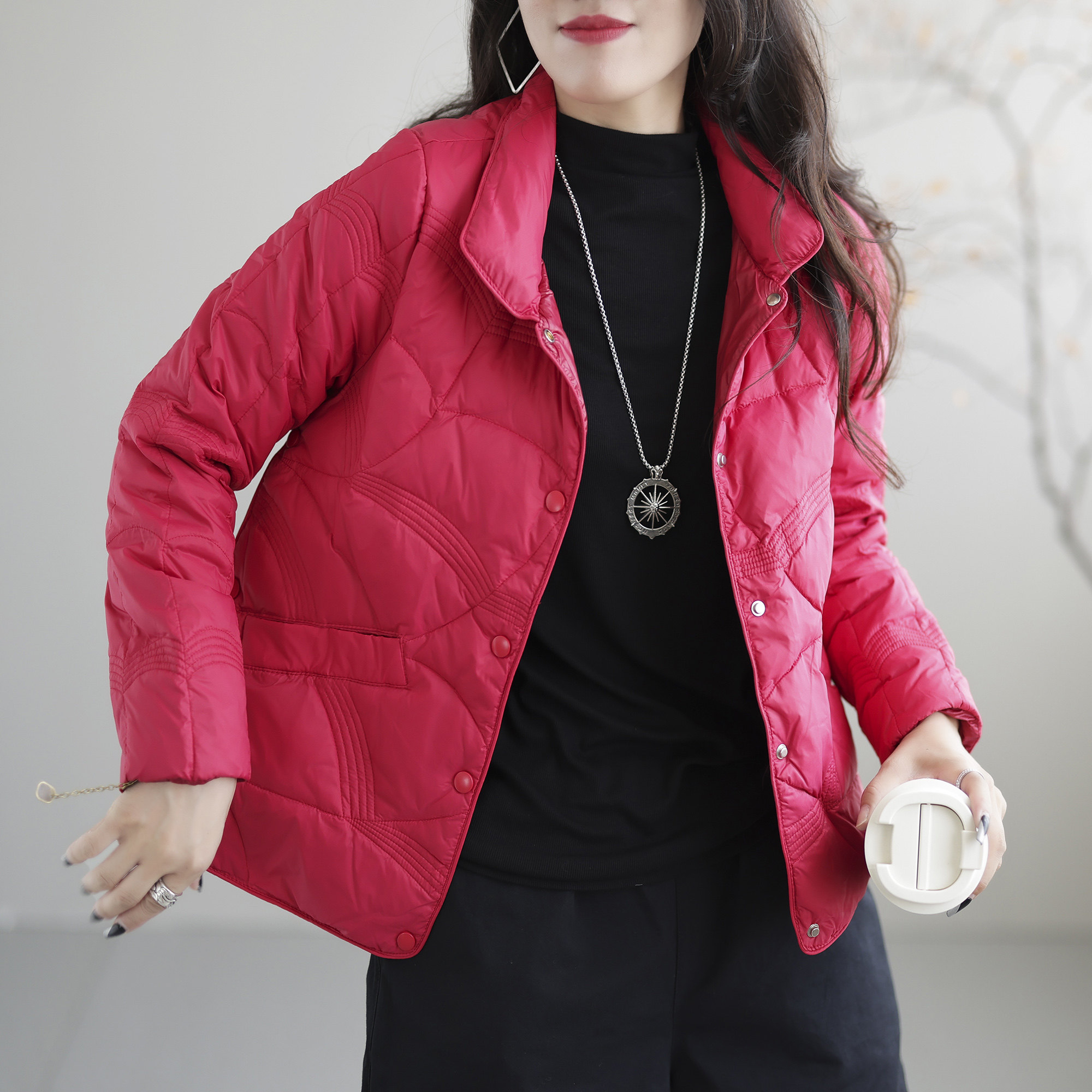 佟丽娅明星同款鸭鸭轻薄羽绒服女冬季反季休闲圆领内胆保暖外套J