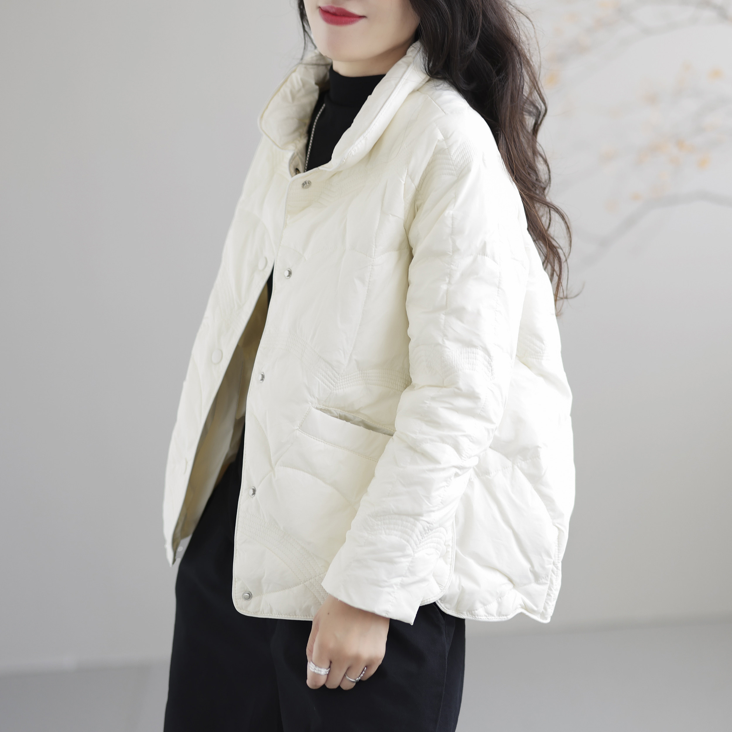 鸭鸭轻薄羽绒服女2025年秋冬反季短款立领修身舒适上衣内胆外套J