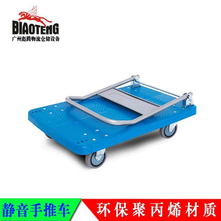 厂家销橡胶轮直静音平板车带扶手推折可叠65844车轻便拉货拖车四轮移动