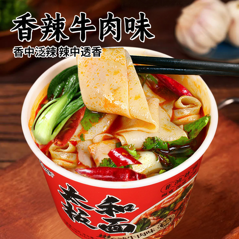 太和板面冲泡即食香辣宽面桶装方便面泡面牛肉面整箱批发学生速食
