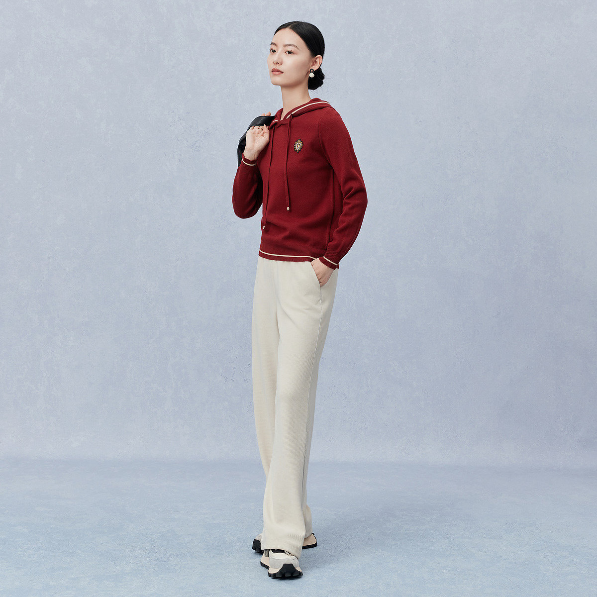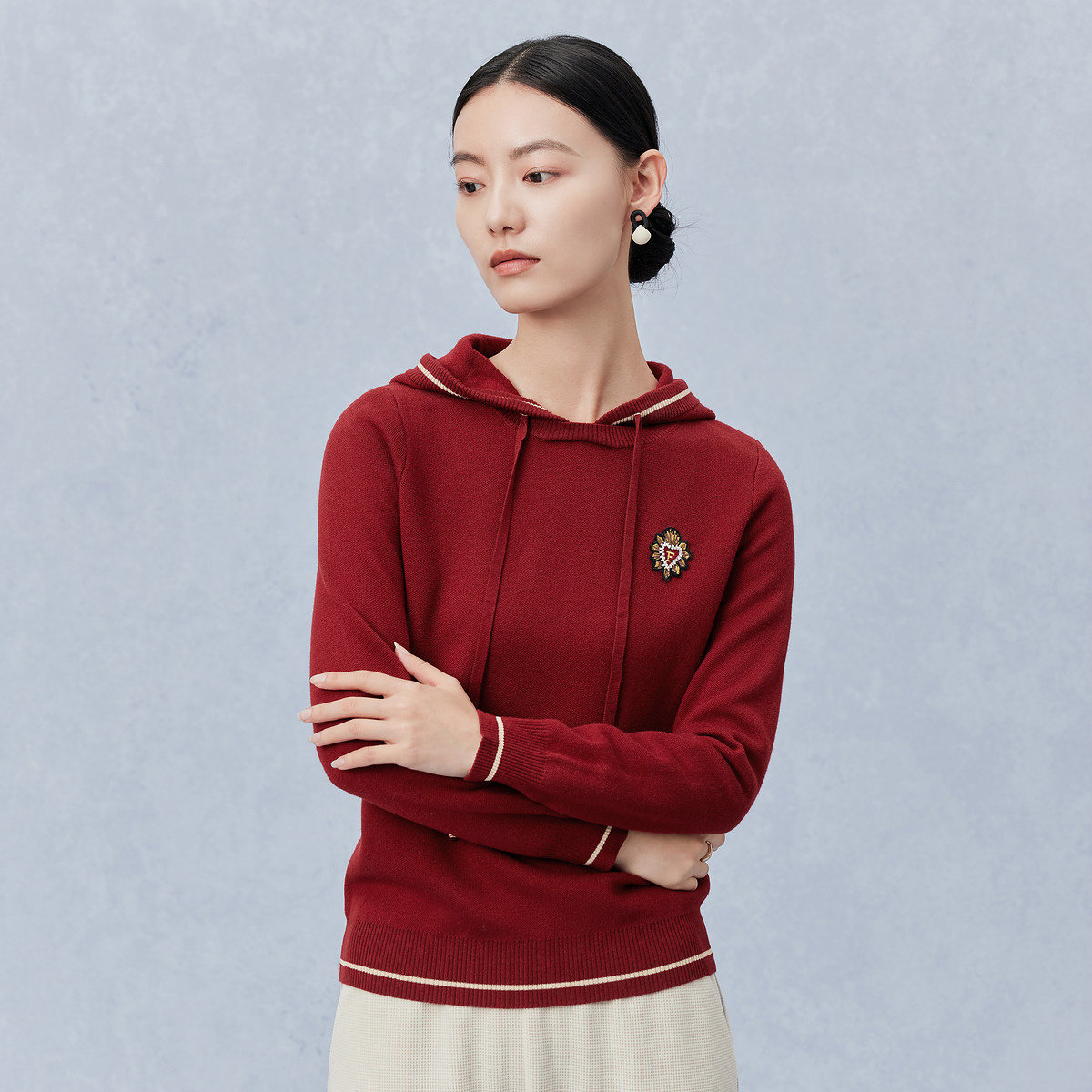 【新年战袍】菲妮迪2026年春新款连帽针织衫时尚设计感毛衣女上衣