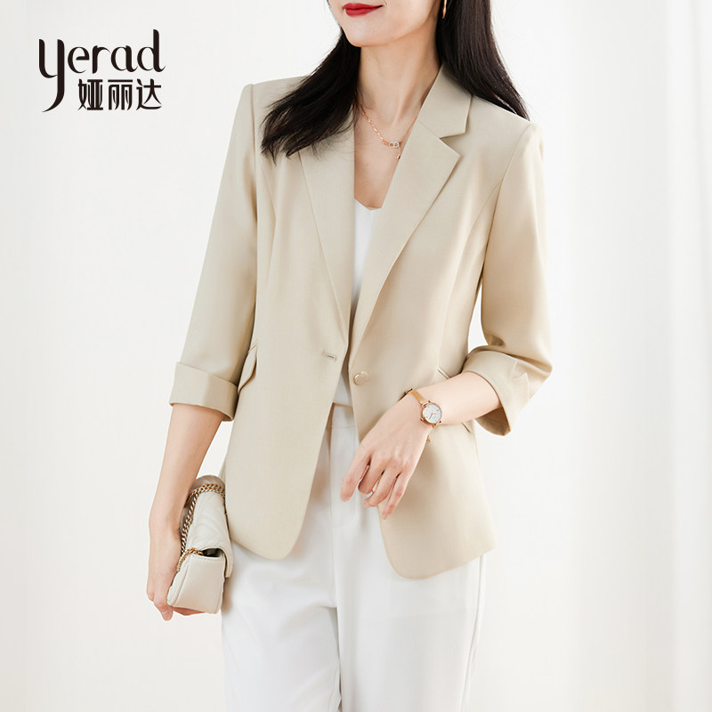芝美日禾 极简弹力针织小个子西装外套女单层修身一粒扣职业正装