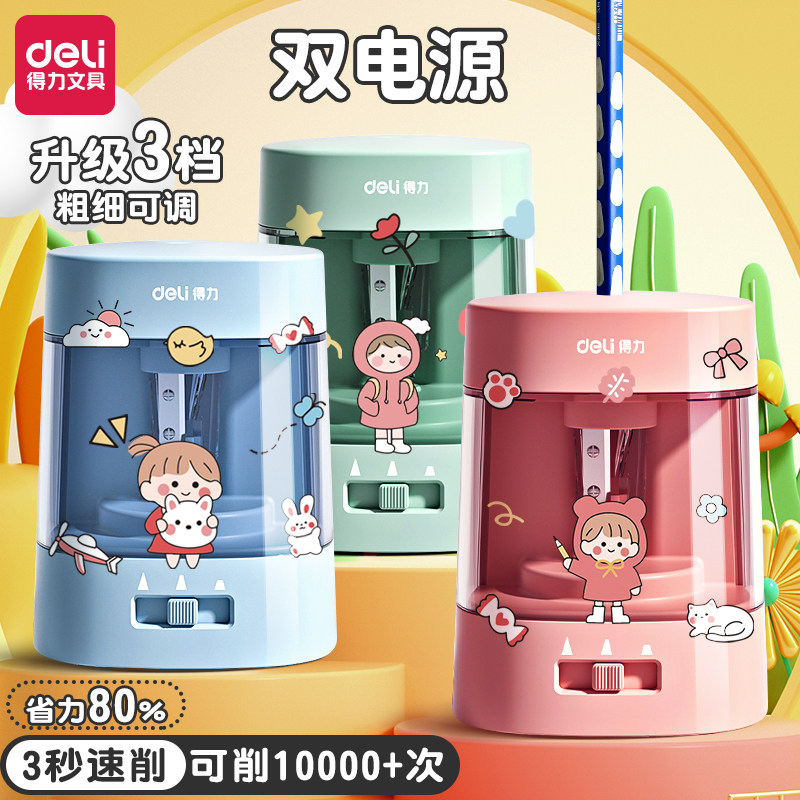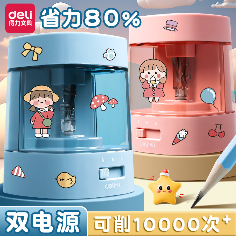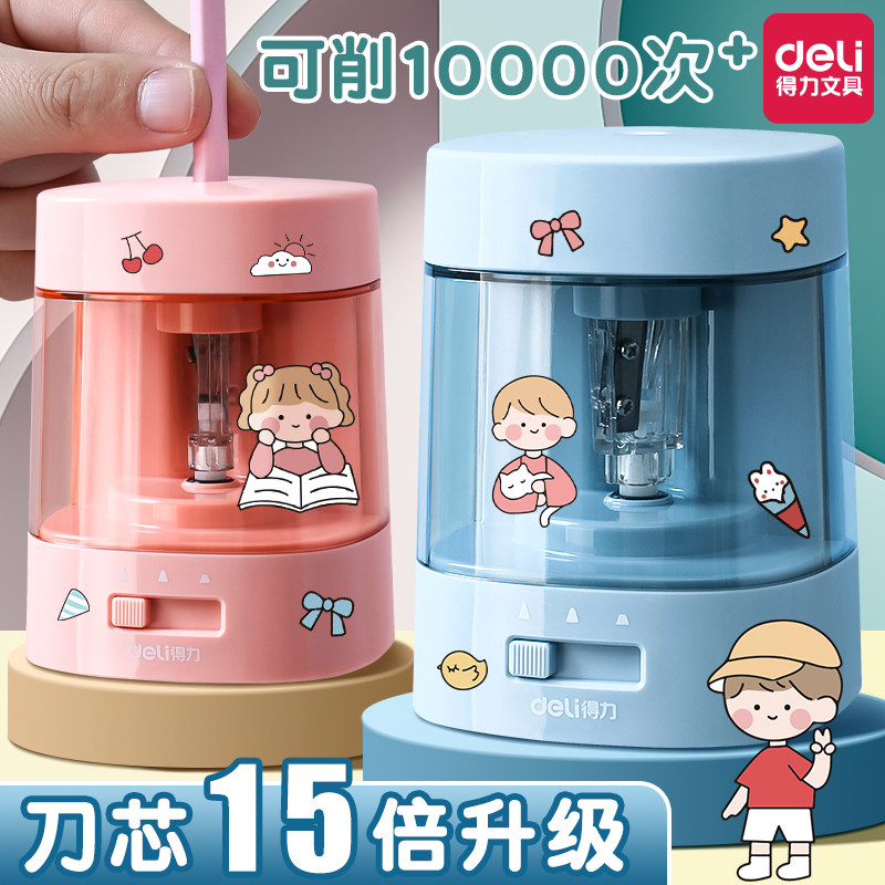 得力自动削笔机电动卷笔刀削笔刀削笔器转笔刀小学生专用铅笔刀幼儿园儿童文具礼品铅笔刀削器电动文具套装