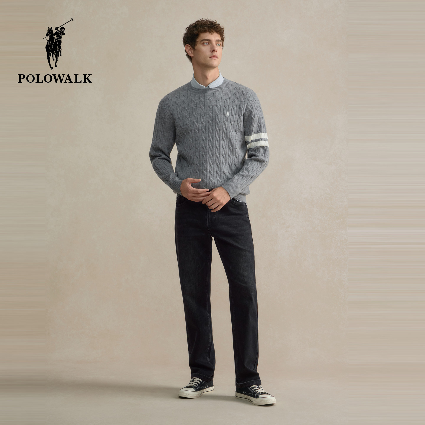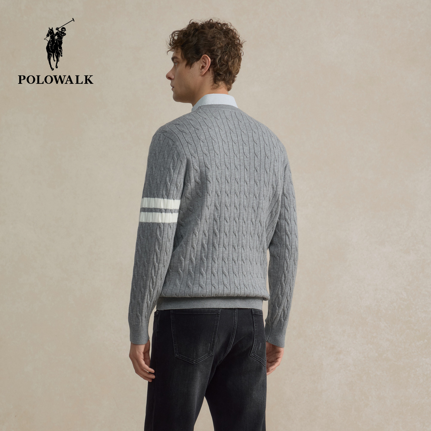 【特惠】POLOWALK男式针织衫2026春季新品针织绞花套头条纹上衣