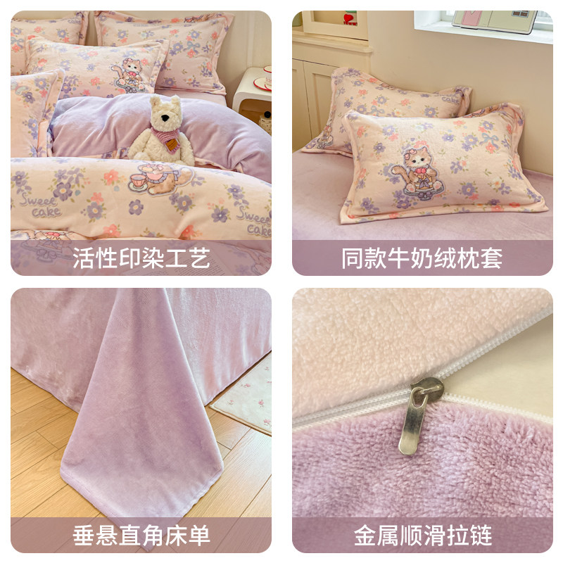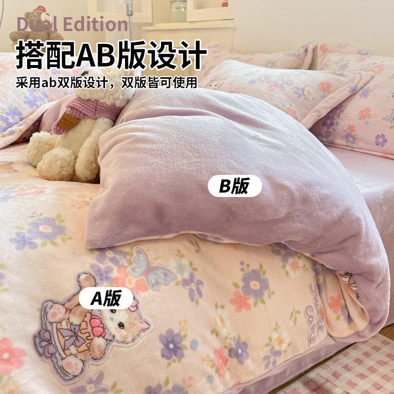 2025新款牛奶绒A类四件套双面加绒珊瑚绒被套床上三件套秋冬季厚
