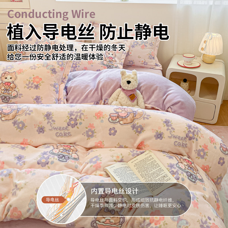 【顺丰快递】慕斯牛奶绒四件套暖绒套件床单床笠秋冬保暖牛奶绒