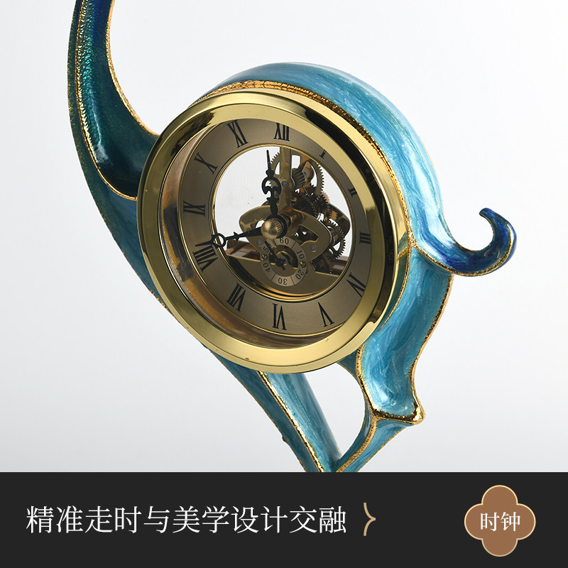 轻奢时钟摆件客厅玄关电视柜创意摆设办公室桌面摆台欧式麋鹿座钟
