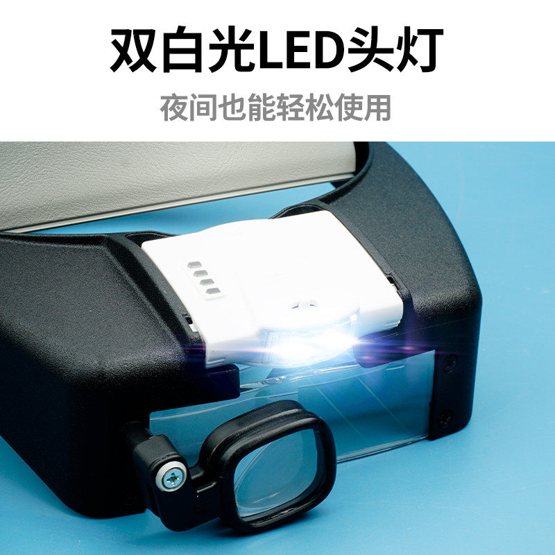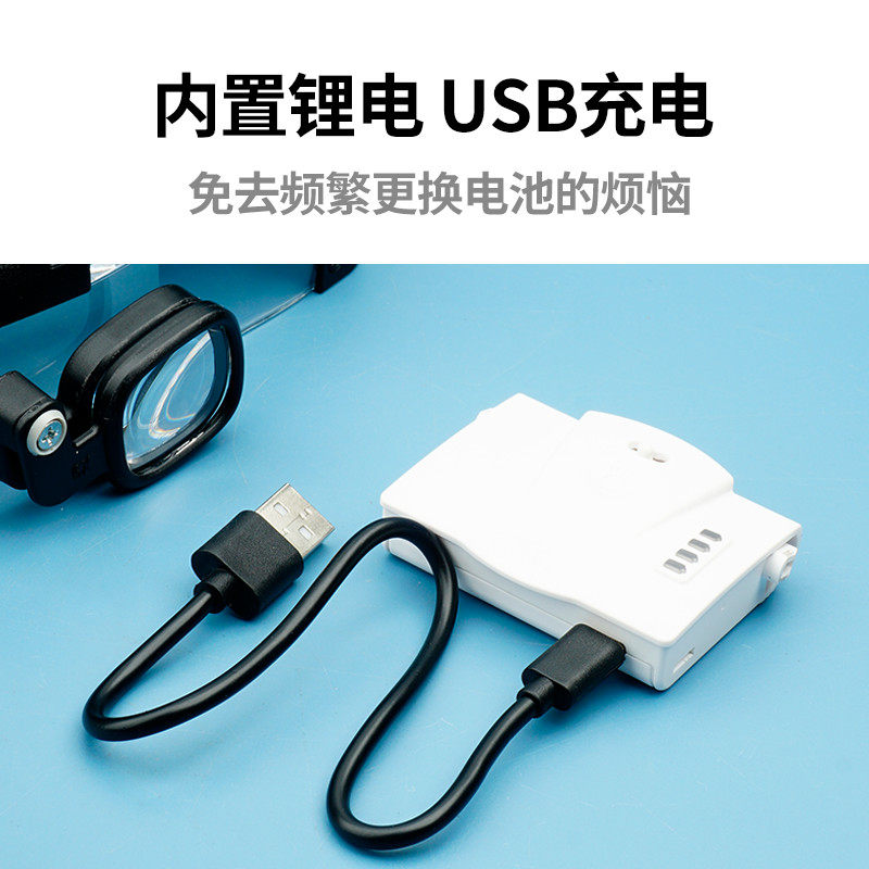头戴式维修放大镜17倍高维修充电款头盔手机电子电路焊接带灯充电