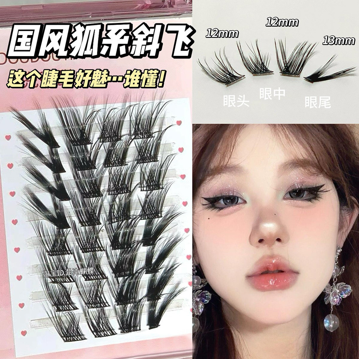 新中式魅惑狐狸眼!狐系斜飞假睫毛女自然浓密款5d仿真cos单簇