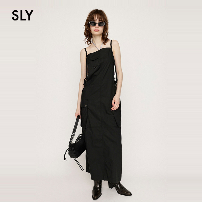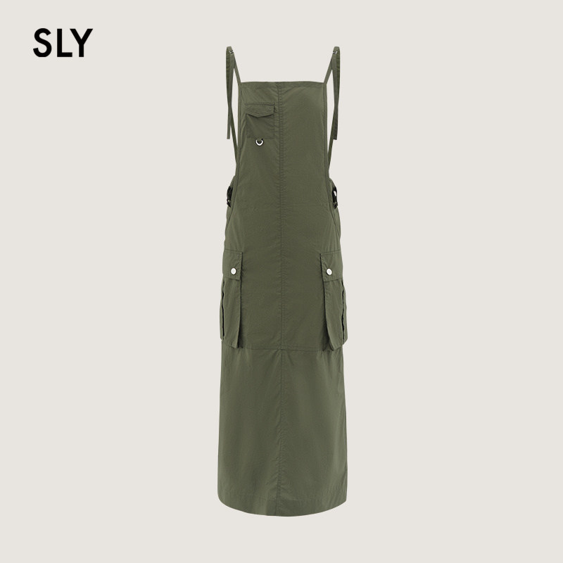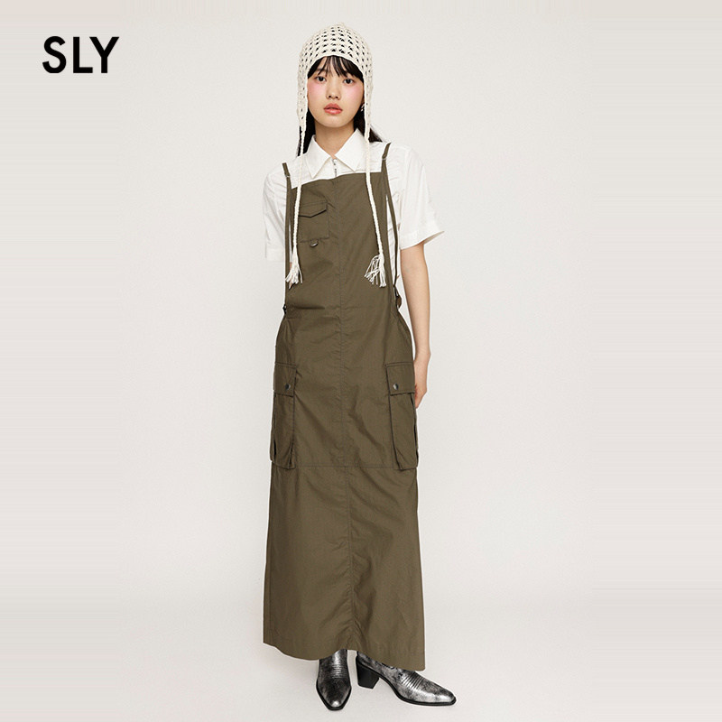 SLY 春季街头感工装风口袋直筒背带连衣裙030HSZ31-1721